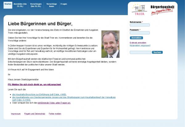 Die 2. Online-Phase zum Bürgerhaushalt Trier startet am 23. September 2009. Stadtvorstand, Beirat und der Steuerungsausschuss der Verwaltung berieten in der vergangenen Woche letzte Details des Konzepts. Bis zum 14. Oktober können Vorschläge ergänzt, kommentiert und bis zum 20. Oktober bewertet werden. Einmalig ist, dass die Ratsfraktionen die bestbewerteten Bürgervorschläge online kommentieren werden. Die Verwaltung wird die Ratsvorlagen mit Hilfe der Beteiligungsplattform erstellen.