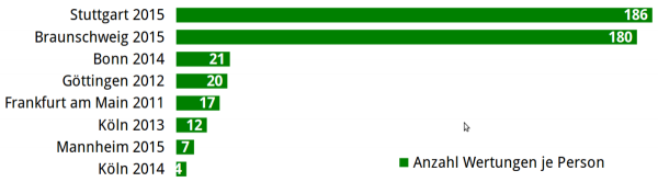 Der Stuttgarter Bürgerhaushalt ist weiterhin eine Erfolgsgeschichte. Zum dritten mal in Folge sind die Zahlen der Teilnehmenden und der Aktivitäten stark gestiegen. Durch Verbesserungen an der Plattform konnte die Zahl der Bewertungsklicks verdreifacht werden. Je online teilnehmende Person wurden rund 180 Bewertungs-Klicks erreicht. Städte mit anderen Plattformen erreichen hier nur Werte zwischen 4 und 21 Klicks je Person.